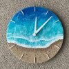 Ocean Resin Wall Clock – Handmade Beach Decor – Coastal Blue Epoxy Art – Unique Housewarming Gift